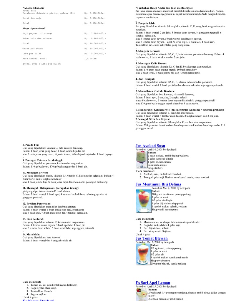 Bahan baku usaha minuman jus buah sangat mudah di temukan di pasaran dengan harga relatif sangat murah. Resep es jus buah naga segar enak. Jadi, daripada menggunakan obat kimia berbahaya, kenapa tidak coba cara. (ingin menghilangkan noda jerawat yang membandel? Hal ini disebabkan karena rasanya yang menyegarkan dan dianggap sehat bagi efek jus buah terhadap berat badan.