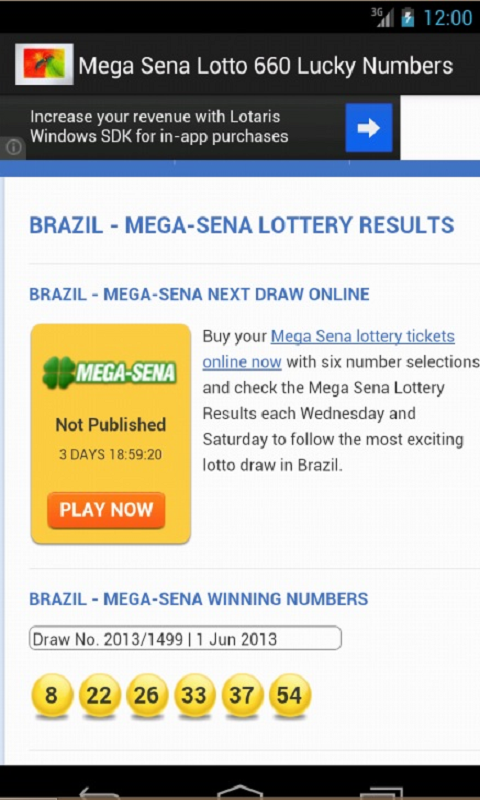 Buy Mega Sana Tickets Play Mega Sena Lottery Online from mobile.playusalotteries.com More than 200,000 digital copies of magazines in one place. Read your magazines anytime, anywhere. This is a list of historical online magazines. As you can see in the table opposite the odds of winning a jackpot drop considerably the more numbers you pick. Free magazines shares with you interesting us, uk, ca, au magazines pdf. Read them anytime and anywhere on ipad, iphone, android devices and the web. Depois, os apostadores contam com duas opções: Mega sena lottery results and winning numbers.